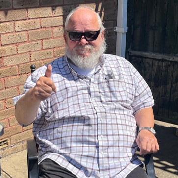 Bernie loves to be able to get out in the garden during the spring and summer months. We provide respite care for Bernie so that his wife Sue can get out to do some shopping, run some errands, and see some friends from time-to-time. Bernie has befriended a seagull in their garden, and loves to feed it when it comes to call.