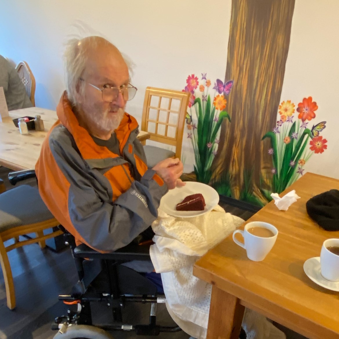 So good to be home again! After visiting Ron whilst he was in hospital recently, now that he is home again it was lovely to be able to go out for a walk with him to get some fresh air and have a cafe stop for tea and his favourite crimson cake! As with all of our customers, Ron always has a wealth of stories about his life to share with us.